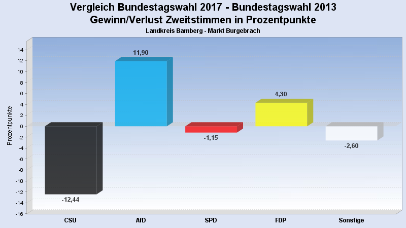 | Partei | Zweitstimmen 2017 | Prozent 2017 | Zweitstimmen 2013 | Prozent 2013 | |